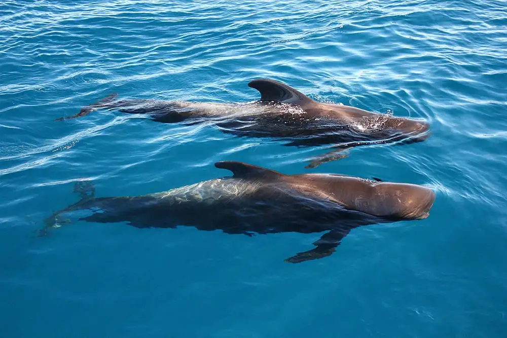 G. melas(长鳍):主要见于北大西洋与南半球温带—副极地海域;胸鳍更长,耐冷性更强。