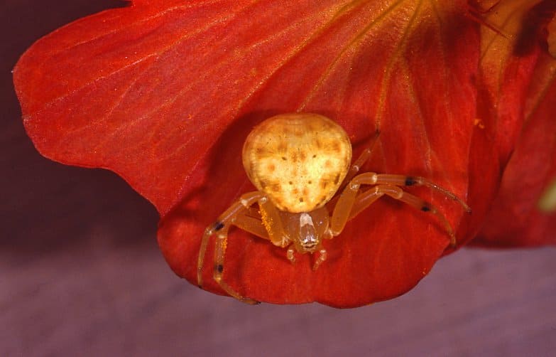 伪装能力:部分物种(如 Misumena vatia 等)拥有体色可在白色与黄色之间缓慢变化的能力,使身体颜色与所停驻花朵相匹配。