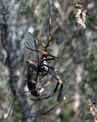 学名(泛指):Araneidae – golden orb‑weaving spiders(典型属如 Trichonephila spp.)