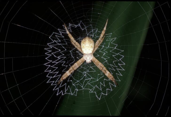 圣安德鲁十字园蛛是一种典型的圆网织造者(orb-weaver),但它最特别之处在于网中央的“稳定线”结构: