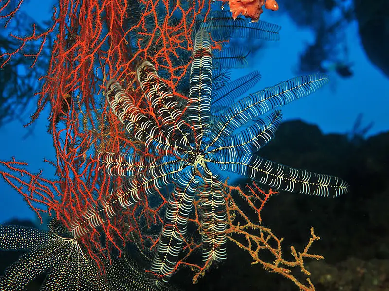 - 体长:臂展 10–30 cm 常见;羽星 50–70 cm+;海百合柄长 1–2 m+