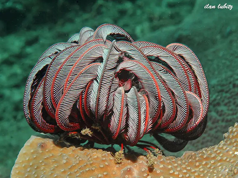 节律:许多羽星昼伏夜出,夜间张开羽状臂滤食。