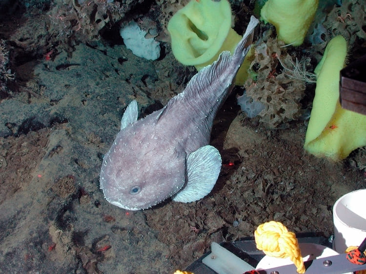 水滴鱼(Psychrolutes marcidus)是生活在澳大利亚与塔斯马尼亚外海大陆坡的深海底栖鱼类,隶属蟾头鱼科。 它在海底的样子并不“塌软”——那是被人类打捞后减压导致的组织塌陷:深海高压支撑其凝胶状身体,一旦上浮至近海面,外压骤降便呈现“水滴脸”。