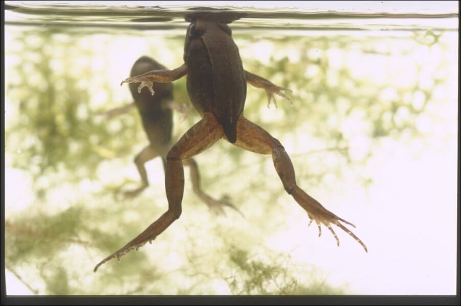 条纹沼泽蛙为夜行性、半水栖蛙类: